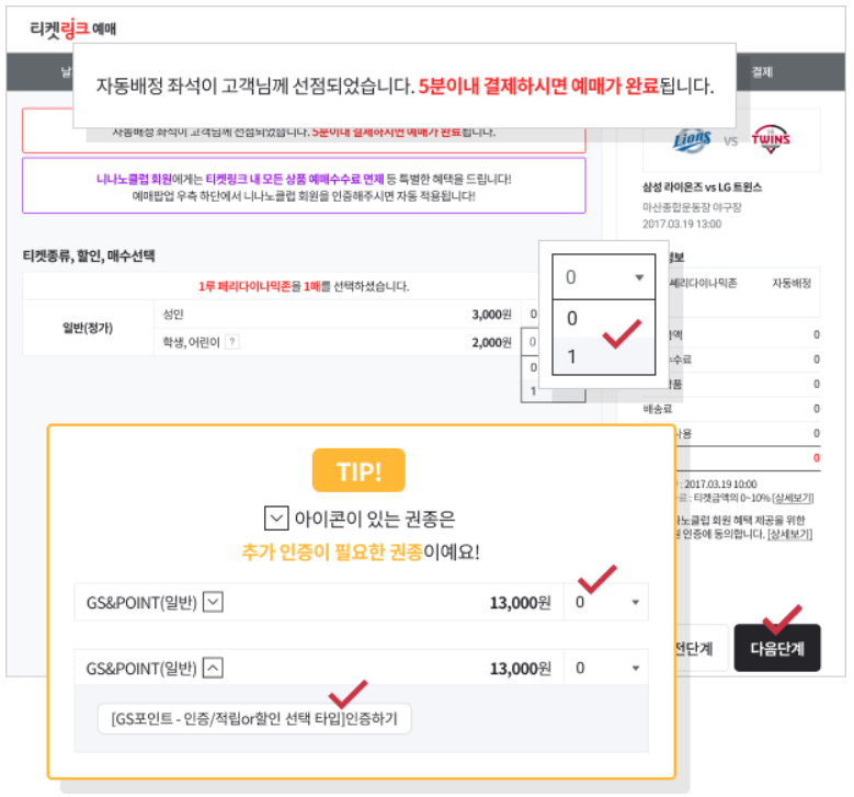 티켓링크 스포츠 티켓 핸드폰 예매방법