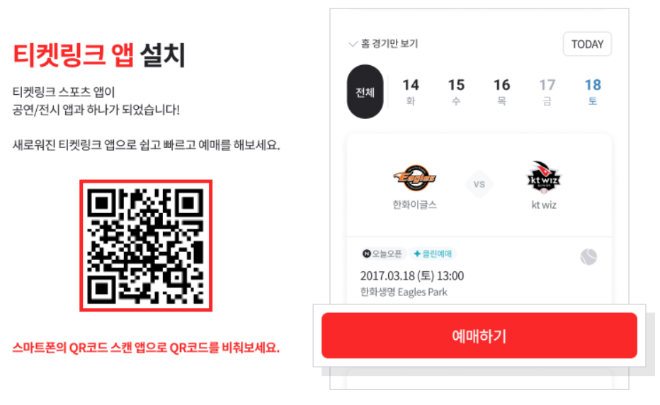 티켓링크 스포츠 티켓을 핸드폰으로 예매하기 위해서는 어플이 있어야 합니다. 바로 아래에서 티켓링크 어플을 다운로드 받아 PC와, 핸드폰, 태블릿을 이용해 티켓팅 확률을 높이기 바랍니다.